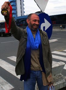 Acest om al nisipurilor, purtand numarul 100, a parcus 243 km in 6 zile prin dunele infierbantate ale desertului Sahara, a alergat la o temperatura de 40-50 grade C , purtand un rucsac in spate plin cu d’ale gurii, asta inseamna , apa, mancare… si cand spun “mancare”, nu ma refer la te miri ce bucate alese, ci la o pasta gelatinoasa, mancare liofilizata mai exact, plus alte chestii impuse de regulamentul maratonului.